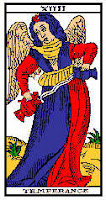 En el Tarot hi ha una carta anomenada "La Temprança" que se sol representar amb una dona que aboca aigua d'un gerro a un altre. Se suposa que un d'ells conté aigua freda i l'altre aigua calenta. M'agrada aquesta carta perquè és molt gràfica.